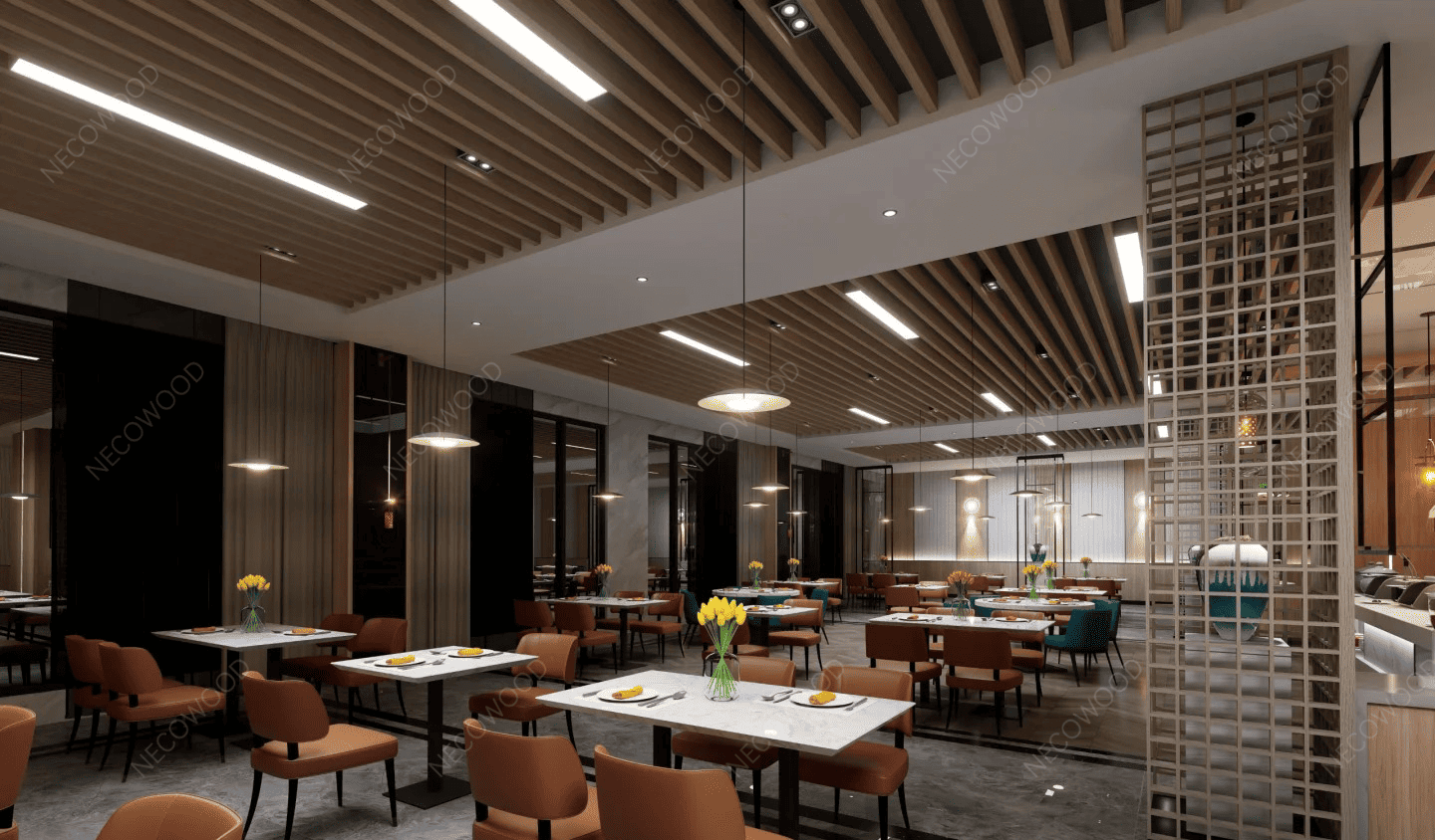 The indoor ceiling market is expected to move further toward environmentally responsible materials with greater structural reliability. Suppliers that deliver sustainable waterproof and acoustic solutions will gain broader adoption in renovation and new-build projects. Necowood aligns product design and supply services with these market requirements to support partners in competitive project delivery.